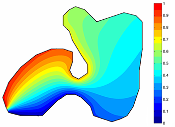 traits class. Suppose we know the boundary of three-dimensional piece of terrain that can be represented as a polygon with several three-dimensional vertices, where the third dimension indicates the corresponding height. The task is to propagate the height from the known sample points on the boundary to the polygon's interior. This gives an approximate estimation of the terrain's surface in this region.