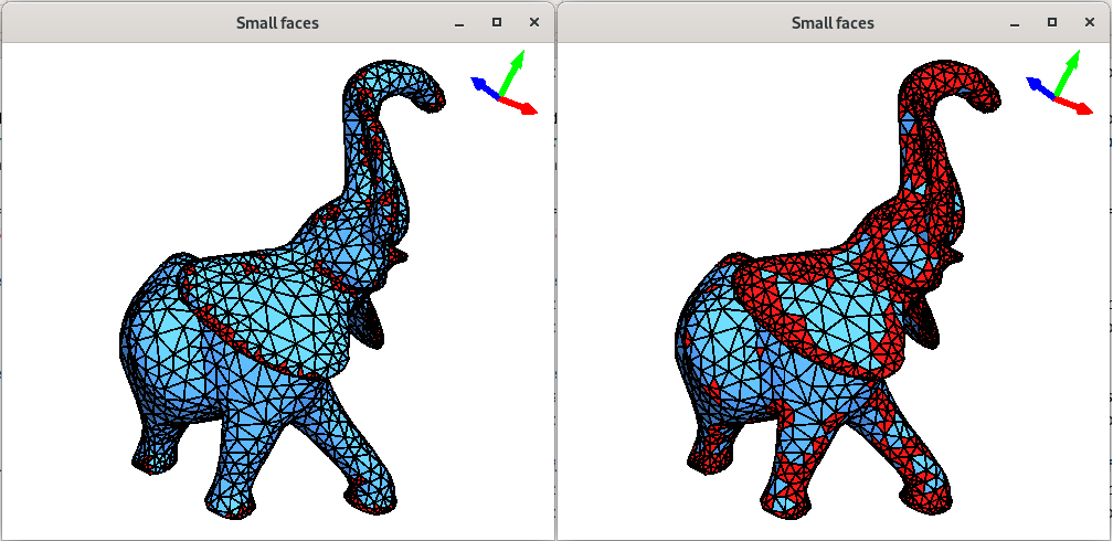 Figure 121.7 Two examples of drawing of a mesh with small faces in red. Left: With the initial threshold. Right: After having increased the threshold.