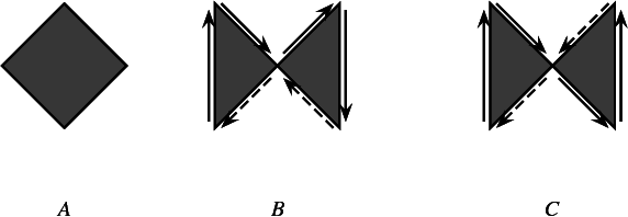 A Relatively simple polygon allows vertices with a degree \(> 2\), but all of its edges are disjoint in their interior. Furthermore, it must be an orientable polygon. Namely when it is inserted into an arrangement and its outer boundary is traversed, the same face is adjacent to all of the halfedges (no crossing over any curve during the traversal). Note that while polygon C has the same curves as polygon B, traversal of the curves leads to crossing over a previously traversed curve, and is therefore neither simple nor relatively simple.