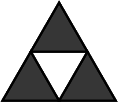 Consider, for example, the regular set depicted on the right, which is the result of the union of three small triangles translated appropriately. Alternatively, the same set can be reached by taking the difference between a large triangle and a small upside-down triangle. In general, there are many ways to arrive at a particular point set. However, the set of polygons with holes obtained through the application of any sequence of operations is unique. The set depicted on the right is represented as a single polygon having a triangular outer boundary with a single triangular hole in its interior - and not as three triangles that have no holes at all. As a general rule, if two point sets are connected, then they belong to the same polygon with holes.