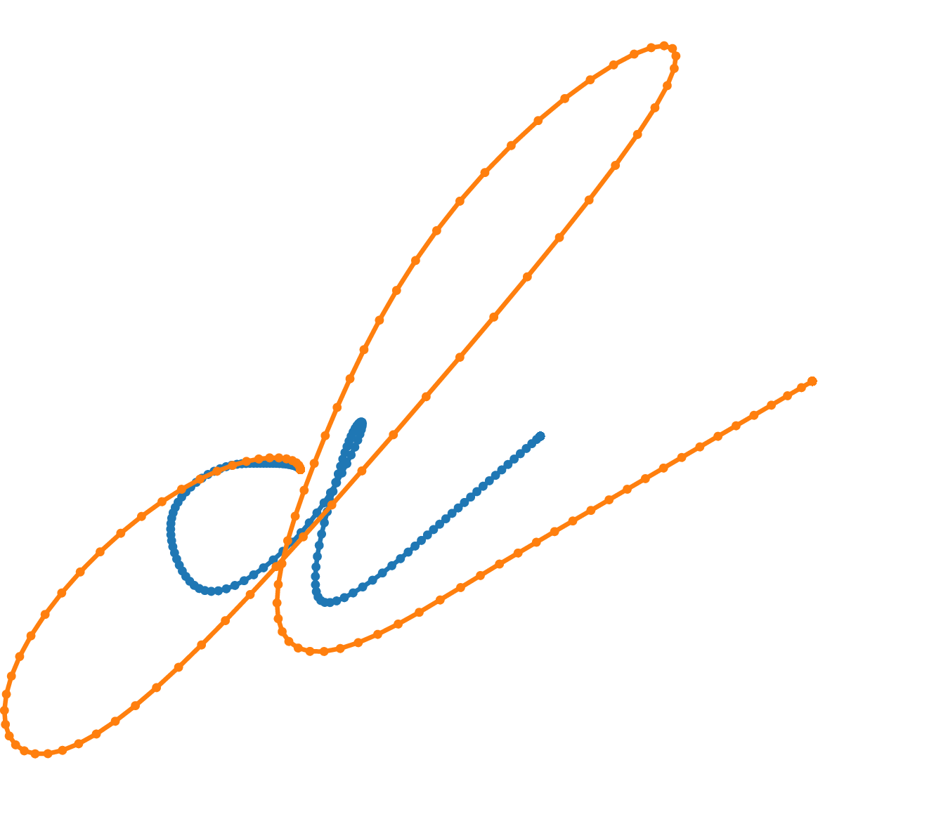 The character image is a visualization of two data points from the Character Trajectories data set.