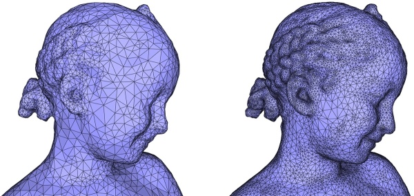 Figure 68.4 Left: 120K points sampled on a statue (Minolta laser scanner). Right: reconstructed surface mesh.