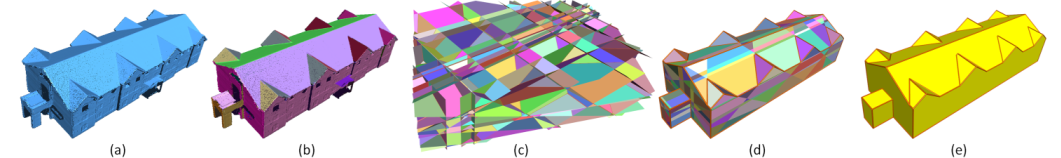- generate a set of candidate faces by intersecting the extracted planar primitives;