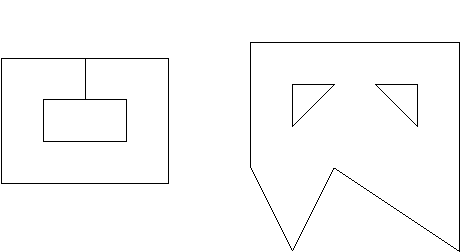 Figure 21.3 Examples of weakly simple polygons: one with no holes and two edges coincident (left) and one with 2 holes (right).