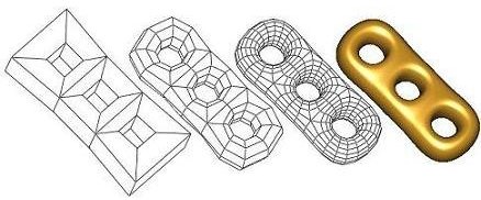 guarantees the topological properties of the subdivided mesh. A genus- \( n\) 2-manifold is assured to be subdivided into a genus- \( n\) 2-manifold. But when specialized with ill-designed geometry masks, Subdivision_method_3