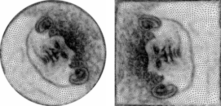 . This border is parameterized with an arc-length circular border parameterization. The sparse linear solver of the Eigen library is used.