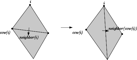 exchanges the edge incident to f and f->neighbor(i) with the other diagonal of the quadrilateral formed by f and f->neighbor(i).