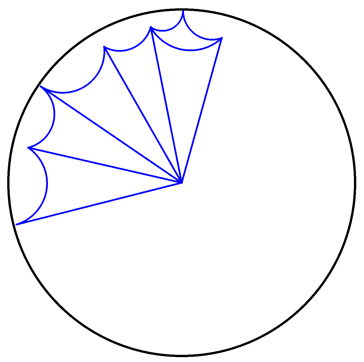 Figure 46.3 Lift, in the Poincaré disk, of a Delaunay triangulation of a genus two hyperbolic surface with one vertex.