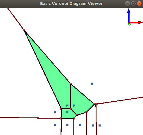 Finally, depending on the adaptation traits passed to the Voronoi diagram adaptor, we can perform point location queries, namely given a point \( p\) we can determine the feature of the Voronoi diagram (vertex, edge, face) on which \( p\) lies.